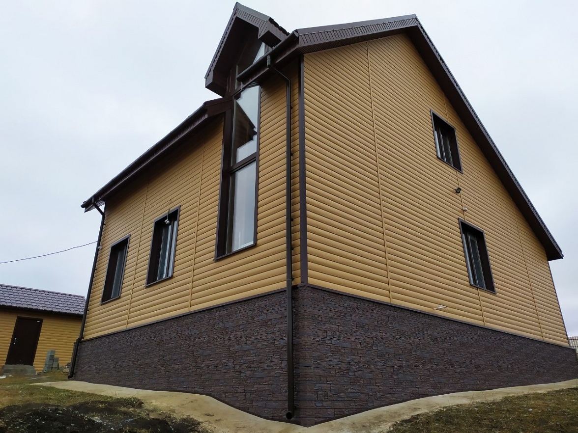 Сайдинг цвета спелого банана подходит для фасадов любой сложности и отлично показывает себя в непростых климатических условиях - не теряет насыщенности, не желтеет. Оттенок особенно красив в классических сочетаниях со светлыми аксессуарами и более темной кровлей.