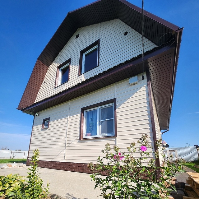 Сайдинг цвета спелого банана подходит для фасадов любой сложности и отлично показывает себя в непростых климатических условиях - не теряет насыщенности, не желтеет. Оттенок особенно красив в классических сочетаниях со светлыми аксессуарами и более темной кровлей.