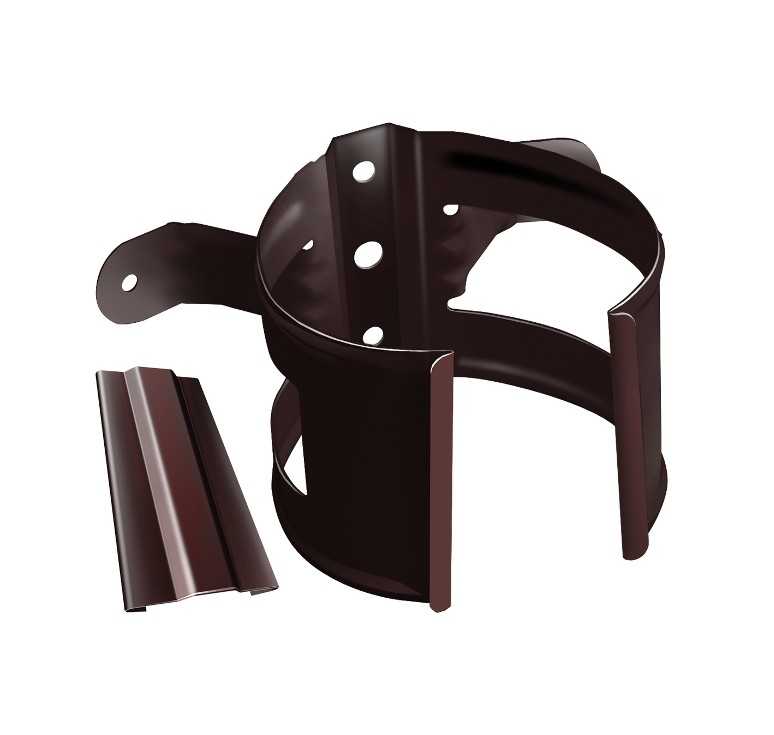 Хомут трубы необходим для крепления водосточной трубы к стене. Он надёжно удерживает и фиксирует водосточную трубу в заданном положении, что во многом упрощает процесс монтажа.