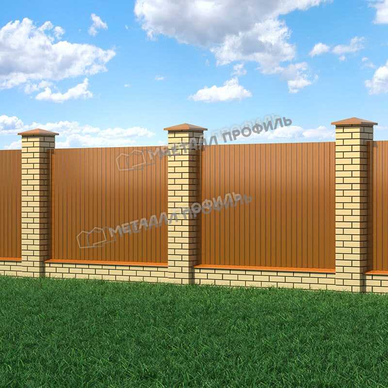 Профиль МП-10 0,5 AGNETA® Copper/Copper/Медный/Медный имеет универсальные размеры, что позволяет его использовать для различных целей - от кровли и фасадов до заборов и ограждений.